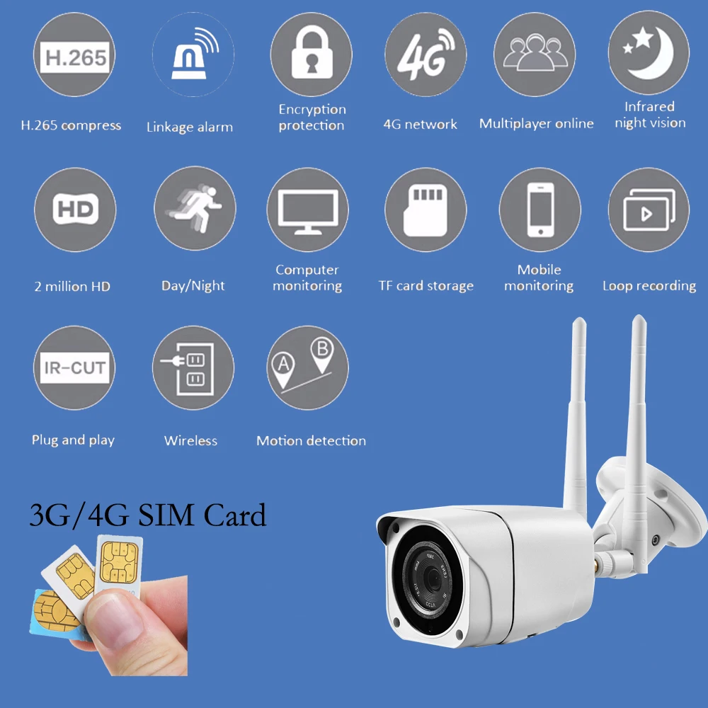 Full HD 1080P Bullet IP Camera Wireless GSM 3G 4G SIM Card Wifi Outdoor Waterproof cctv Cameras IR Night Vision P2P Industrial